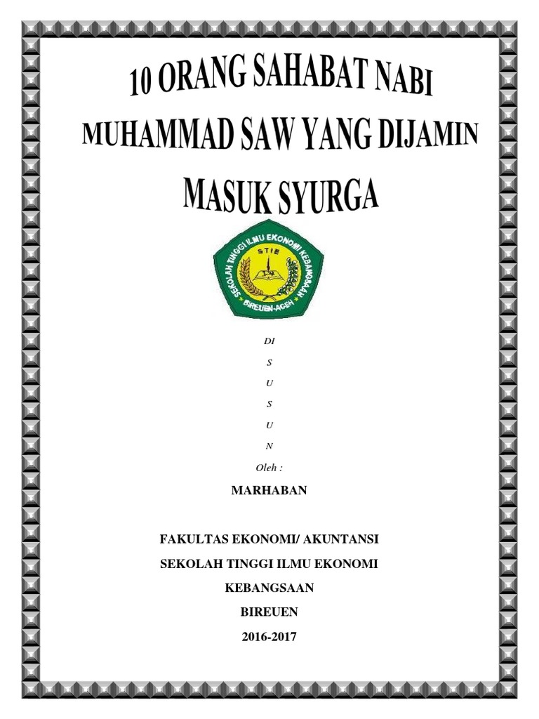 2 dari 6 halaman 1. Jadi sepuluh sahabat yang dijamin masuk surga yang disebut dalam satu hadits sekaligus adalah. Said Bin Zaid 19 9.